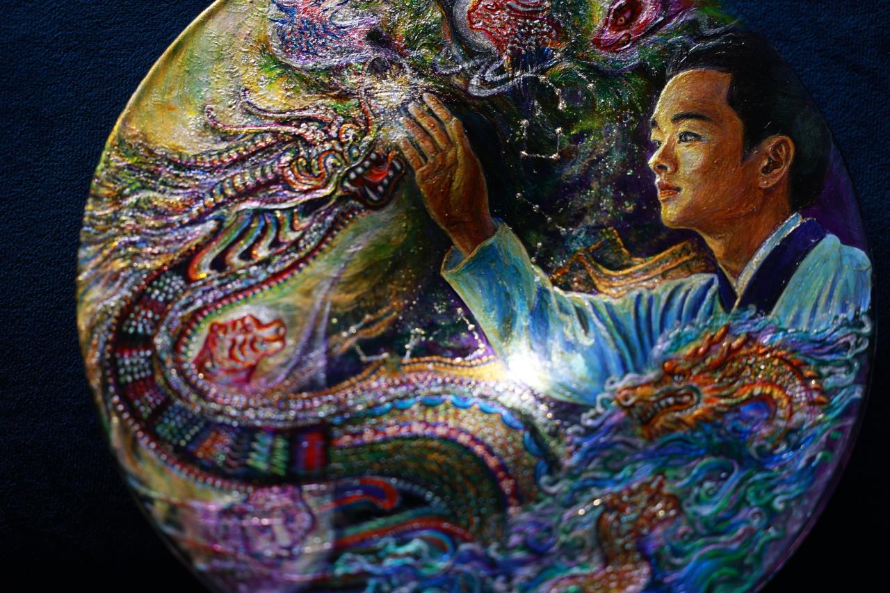 玻璃画《东方青龙》。(受访者供图)