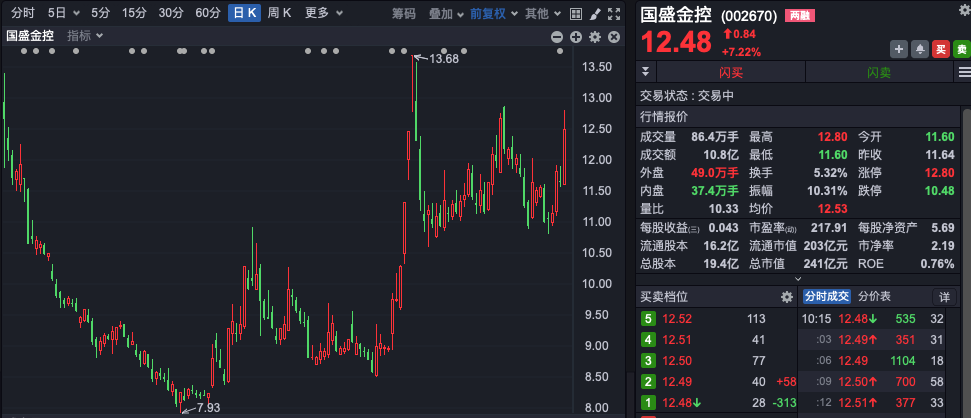 A股盘中,证券板块轰动拉升。国盛金控一度封涨停,扫尾发稿涨幅收窄至7.22%。另外,锦龙股份、浙商证券、中国星河、东方钞票等快速跟涨。
