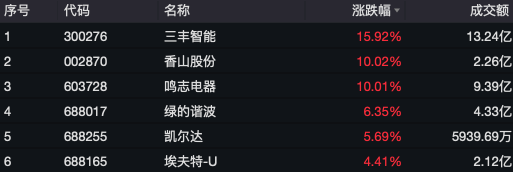 此外,盘中,机器东谈主宗旨股轰动走强。香山股份、鸣志电器封板涨停,三丰智能涨超15%。