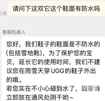 网友与某雪地靴官方客服对话截屏